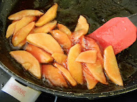 - In a non-stick skillet, saute the apple slices until they begin to colour.